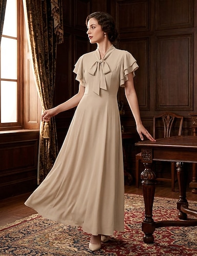 Årgang De livlige 20-årene 1920-tallet Lang Lengde Kjoler Flapper kjole Korte ermer Den store Gatsby Charleston Helfarge A-linje V-hals Kostyme Dame Halloween Karneval Cocktailfest Voksen Kjole Alle