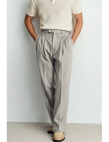 Menn Bomull Lin Dressbukser Uformelle bukser Gateklær Virksomhet Elegant Formell Stil Fritid Hvit Rosa Beige Helfarge Skreddersydd Lang Uelastisk