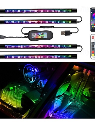 LED-stripelys, smarte RGB-innvendige billys med appkontroll, musikkmoduser og millioner av farger, LED-lys for bildekor, DC 12V