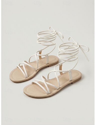 hvite flate sandaler med stropper til dame, komfortabel ferie &feriested kveldssko