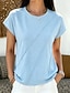 Dame T skjorte Stilfull Klassisk Kortermet Crew-hals Vanlige topper Avslappet Blå Svart Hvit Rosa Sommer Vår