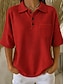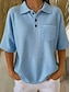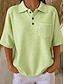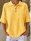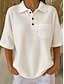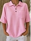 Dame Vaffelskjorte Sommertopper Lomme Knapper Helfarge Årgang Stilfull Ermeløs Halvlange ermer Polokrage Vanlige topper Avslappet Daglig utendørs Blå Hvit Gul Rosa Rød Sommer Vår Høst