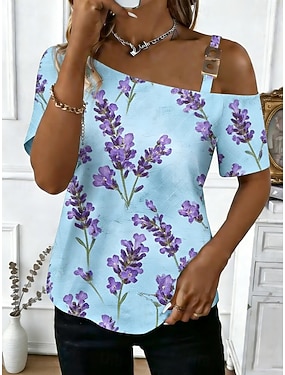 Dame T skjorte T-skjorte Trykt mønster Blomstret Grafisk Mote Klassisk Fritid Kortermet Enskuldret Vanlige topper Daglig Ut på byen Helg Blå Gul Rosa Sommer Vår