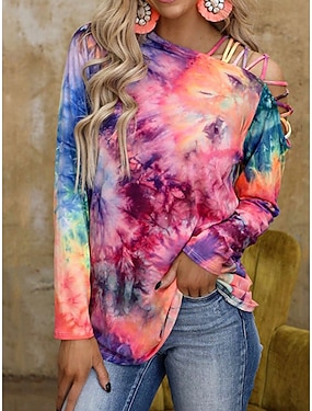 Dame Bluse Batikkfarget Elegant Daglig Stilfull Langermet Asymmetrisk Vanlige topper Daglig Feriereise Fest Blå Rosa Vår Høst