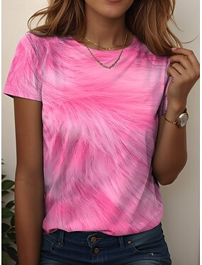 Dame T skjorte Trykt mønster Grafisk Konsistens Marmortrykk Grunnleggende Kortermet Rund hals Vanlige topper Avslappet Helg Blå Rød Lilla Grønn