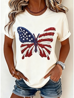 Amerikansk uavhengighetsdag Dame T skjorte Trykt mønster Blomstret Grafisk Flagg Stilfull Klassisk Fritid Kortermet Crew-hals Rund hals Vanlige topper Avslappet Daglig Hvit Rød Sommer Vår