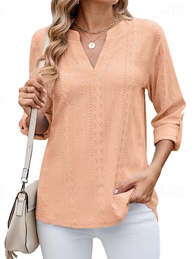 Dame Teksturbluse Øyetopp Pointelle-t-skjorte T skjorte Snørehull Stripet Mote Klassisk Fritid Langermet V-hals Vanlige topper Avslappet Daglig Strand Svart Hvit Rosa Navyblå Himmelblå Sommer Vår