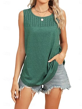Dame Øyetopp Pointelle-t-skjorte Med Tekstur Grafisk Stilfull Klassisk Ermeløs V-hals Vanlige topper Avslappet Daglig Strand Svart Hvit Gul Rosa Dusty Rose Sommer Vår