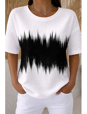 Dame Vaffel T-skjorte Strukkede strikkede topper Sommertopper Trykt mønster Grafisk Geometrisk Abstrakt Stilfull Klassisk Kortermet Crew-hals Rund hals Lange topper Avslappet Daglig Hvit / Svart