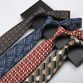 Herre Slips Mote Forretning Jacquard Stribe Geometrisk Bryllupsfest Dagligdagstøy
