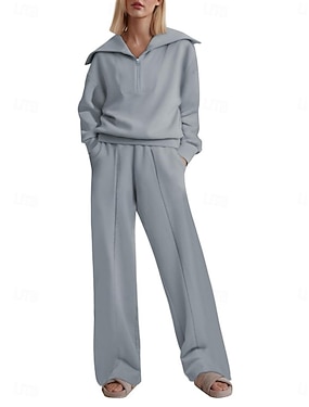 Dame Pysjamas Sett Fleece Fôret 2 Deler Genser Joggedrakter Loungewear Sett Pysjamas Fleece Ludd Langermet Topp og Bukse Teksttrykk Komfort Uformell Hjemmeslitasje Snor Enfarget Koselig Vinter