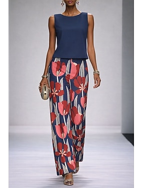 Dame Buksesett Ermeløs Crew-hals Blomstret Grafisk Elegant Ferie Daglig Avslappet Daglig Formell Blå Rosa Grønn Vår sommer Normal Løstsittende