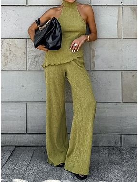 Dame Todelt sett Camis Buksesett Ermeløs Grimehals عادي Mote Gatemote Avslappet Daglig utendørs Svart Brun Grønn Sommer Normal