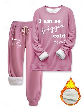 Kvinners pysjamas sett fleecefôret elegant varm moteriktig to-dels sett joggedress buksesett langermet biskop erme crew neck grafisk bokstavtrykk utendørs ferie daglig svart rosa mørk rosa vår
