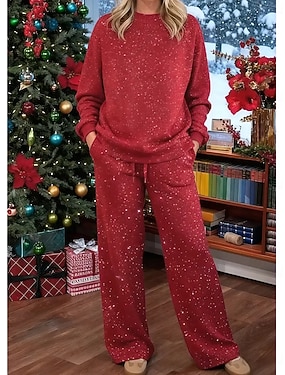 Dame Todelt sett Langermet Rund hals Helfarge Elegant Varm Årgang Avslappet Daglig utendørs Blå Svart Rød Vår Løstsittende