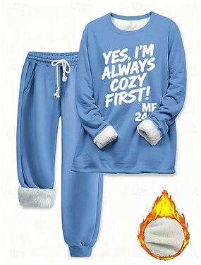 Dame Todelt sett Joggedress Buksesett Langermet Crew-hals Bokstaver Snorer Trykt mønster Daglig Stilfull Avslappet Daglig Blå Svart Rosa Høst Normal