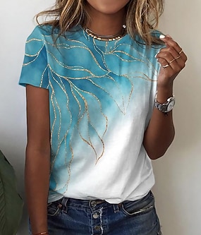Dame T skjorte Trykt mønster Grafisk Konsistens Marmortrykk Grunnleggende Kortermet Rund hals Vanlige topper Avslappet Helg Blå Rød Lilla Grønn