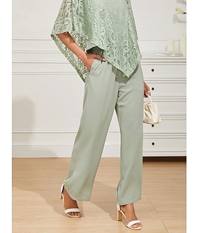 Dame Bred Bukseben kinesisk Grunnleggende Full lengde Høy Midje عادي Lomme Elastisk midje comfy Myk Bekvem Mikroelastisk Bryllup Formell Grågrønn Sommer Vår Normal