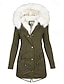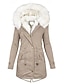 Dame Vinterfrakk Fuskepels Hettegenser Hold Varm Bekvem Glidelås Lomme Knapper Fritid عادي Feriereise Dagligdagstøy Ut på byen Helg Lang Med hette Normal Langermet Yttertøy Svart Hvit Kakifarget Høst
