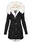 Dame Vinterfrakk Fuskepels Hettegenser Hold Varm Bekvem Glidelås Lomme Knapper Fritid عادي utendørs Feriereise Dagligdagstøy Ut på byen Lang Med hette Normal Langermet Yttertøy Marineblå Svart Rosa