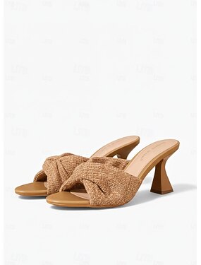 brune damesandaler med firkantet tå – vevd stropp, minimalistisk stil, lav blokkhæl, ideell for uformelt sommerbruk og daglig komfort