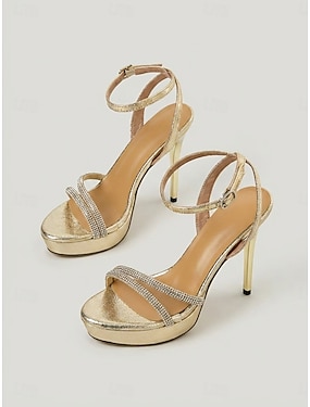 kvinners gullfargede platåsandaler med stiletthæl - cocktailfestsko med strassrem og strass