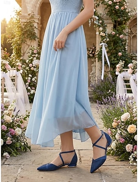 Dame marineblå blondebrudepikesko med ankelstropp – spiss tå med lav hæl i brudesko