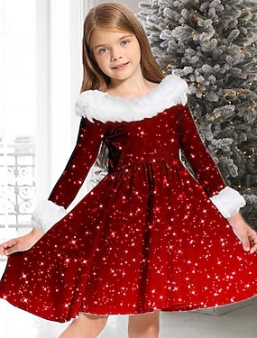 Barn Litt Jente Kjole Ensfarget Kjole med A-linje Daglig Feriereise Rød Ovenfor knéet Langermet Grunnleggende Fritid Kjoler Høst Vinter Normal 3-10 år