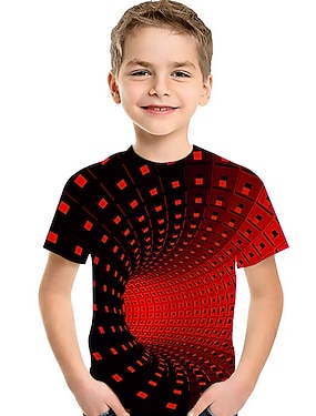 Gutt 3D Geometrisk Fargeblokk 3D Print T skjorte T-skjorte Kortermet 3D-utskrift Sommer Aktiv Sport Gatemote Barn Baby