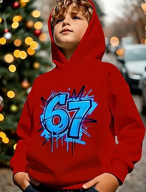 Unisex 3D Grafisk Morsom slang 67 Hattetrøje Pullover Langermet 3D-utskrift Vår Høst Sport Mote Gatemote Barn 4-12 år Med hette Avslappet Daglig utendørs Normal