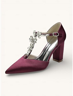 Dame bryllup sko Høyhælte Brudesko Rhinsten Lav hæl Spisstå Elegant Sateng Ankel Stropp Vin Svart Krystall
