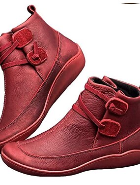 Røde, uformelle ankelstøvletter til dame – myke, varme, flate støvletter med imitert skinn og justerbar stropp for turgåing, reise og vinterantrekk