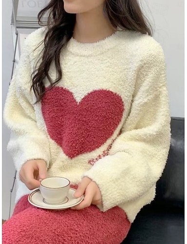pyjamas for kvinner loungewear 2 deler hjertevarm komfort hjemme daglig fleece varm pustende rund hals langermet pullover bukse høst vinter hjemmeantrekk