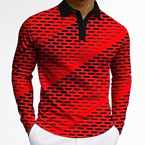 Herre Geometrisk Linje Polo Langermet Poloskjorter Skjorter med krage Business Casual Virksomhet treningsklær Dagligdagstøy 3D-utskrift Knapper Vår Høst Vinter Svart Rød Blå