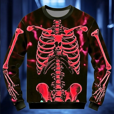 Herre 3D Skjelett Genser Punk Fest Gotisk Langermet Crew-hals Feriereise Blå Rød Lilla Oransje Grønn Crewneck 3D Alle årstider Designer S M L XL XXL XXXL