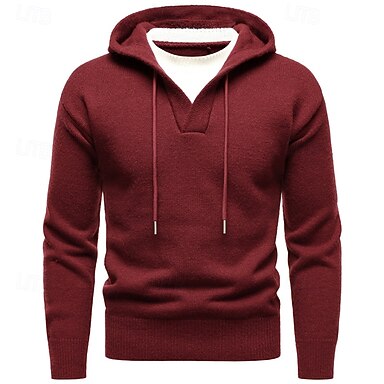 Herre Pullover genser Strikket genser Riflet Strikke Vanlige topper Snorer Strikket عادي Med hette Mote Grunnleggende Feriereise Dagligdagstøy Klær Høst Vinter Svart Rød M L XL