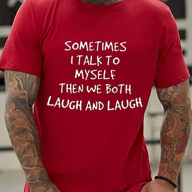 Herrers Morsom Grafisk T-skjorte Kort Erme 'Noen ganger Snakker Jeg Med Meg Selv Så Ler Vi Begge' Livsstil T-skjorte