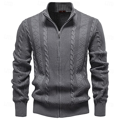 Herre Cardigan Genser Kabel Strikke Vanlige topper Ta igjen glidelåsen Helfarge Rullekrage Elegant Daglig Feriereise Avslappet Klær Vår Høst Svart Mørkegrå S M L