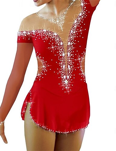 Kjole til kunstløp Jente Skøyteløp Kjoler Rød Lapper Asymetrisk kant Elastisk Trening Konkurranse Skøyteklær Klassisk Krystall / Rhinstein Langermet Skøyting Kunstløp