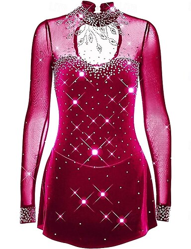 Kjole til kunstløp Dame Jente Skøyteløp Kjoler Rød Lilla Grønn Lapper Tommelhull Netting Spandex Elastisk Trening Profesjonell Konkurranse Skøyteklær Krystall / Rhinstein Langermet Kunstløp