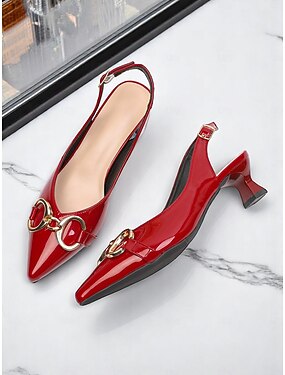 Røde Mary Jane-blokkhæler til dame – komfortable pensko i lakk i kunstskinn med mellomhøy hæl og justerbar stropp for kontorarbeid, business casual og daglig pendling