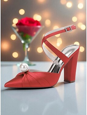 Dame ultrahøye stilettohæler med røde perlestropper – elegante statement-sko til klubber og nyttårsfeiringer &festlige arrangementer