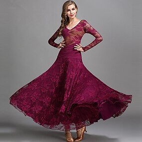 Ballroom-dans Kjole Blonder Plissert Dame Fest Trening Ytelse Langermet Høy Nylon Rayon Elastan