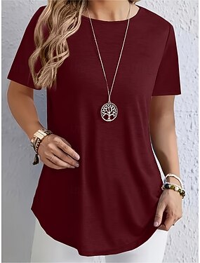Dame T skjorte T-skjorte Helfarge Elegant Mote Klassisk Kortermet Crew-hals Vanlige topper Daglig Ut på byen Helg Blå Svart Rød Lilla Grønn Sommer Vår