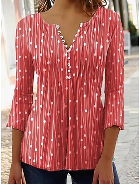 Dame T-skjorte Graphic Polka Dot Elegant Stilren Modern 3/4 Lengde Ermer Volang Ermer V-hals Vanlige Topper Arbeid Daglig Helligdag Rynket Knapper Rød Blå Grønn Grå Sommer Vår Høst