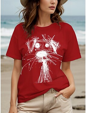 dame t-skjorte stilig uformelt trykk kortermet vanlige topper rund hals daglig hvit rød grønn sommer