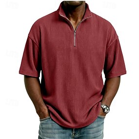 Herre Polo Kordfløyel skjorte Daglig utendørs Quarter Zip Kortermet Mote Grunnleggende عادي Glidelås Sommer Skreddersydd Blå Svart Hvit Rød Navyblå Lilla Polo