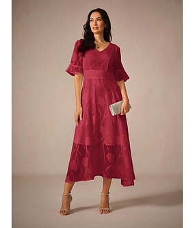 Dame Maxikjole Semi formell kjole Kjole med A-linje Elegant Kontor Bursdag Sommerfuglermer Bryllupsgjest Cocktailfest Formell kveld Normal Helfarge عادي Halvlange ermer V-hals Svart Rosa Rød Grønn
