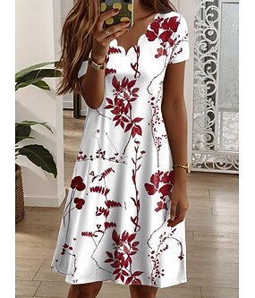 Kvinners Mini Kjole Boho Petite Kjole T-skjorte Kjole Tee Kjole A-linje Kjole Sommerkjole Stilfull Casual Ferie Daglig Ferie Løs Passform Ditsy Blomster Korte Ermer Crew Hals Hvit Rød Blå Grønn