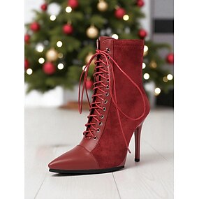 Røde damestøvletter med stiletthæl og spiss tå, elegante og stilfulle, perfekte til julebord, kveldsfester og formelle anledninger.